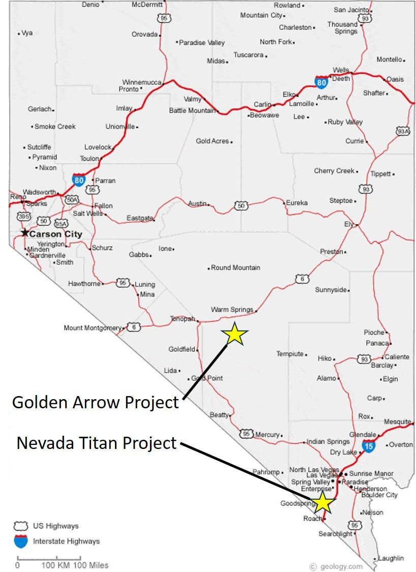 Figure 1: Location of the Golden Arrow Project and Nevada Titan Project